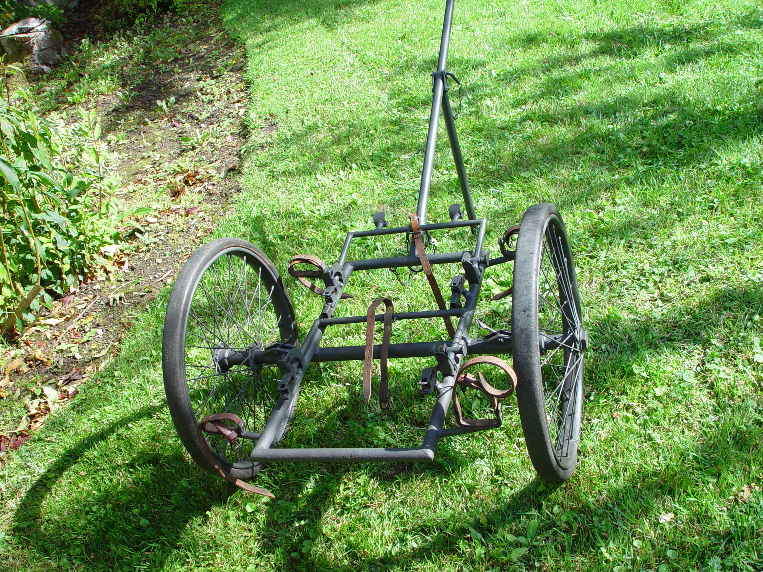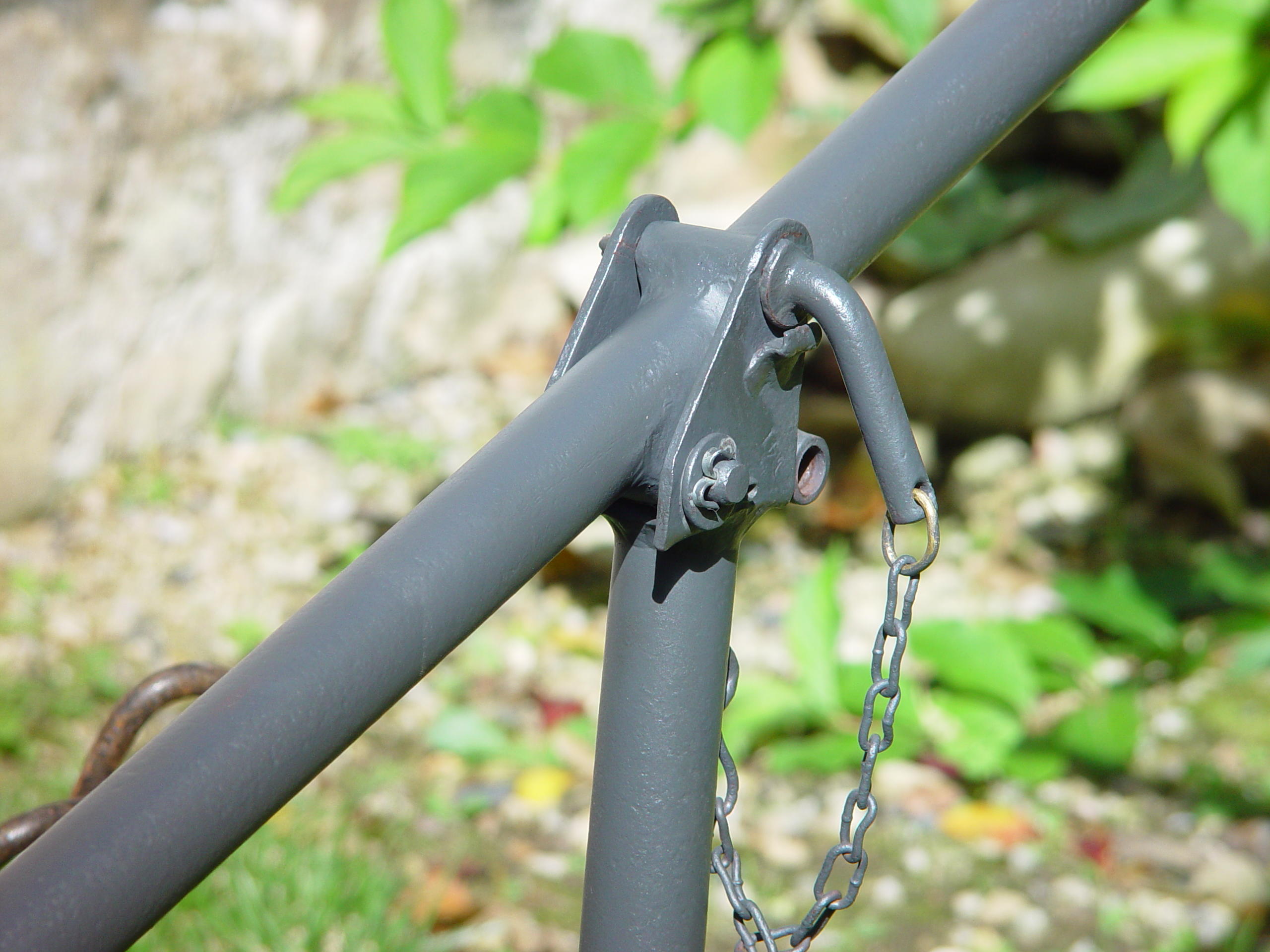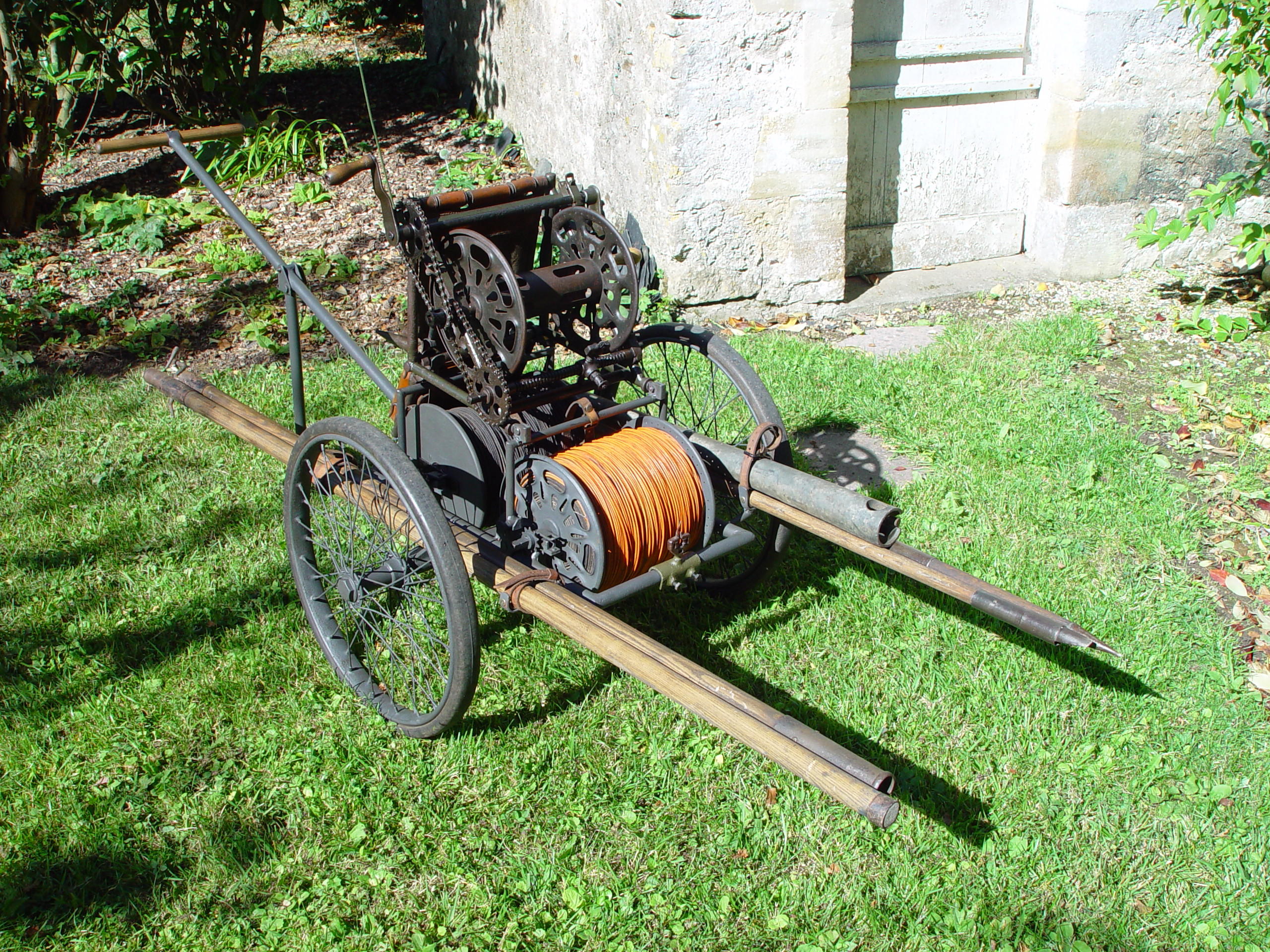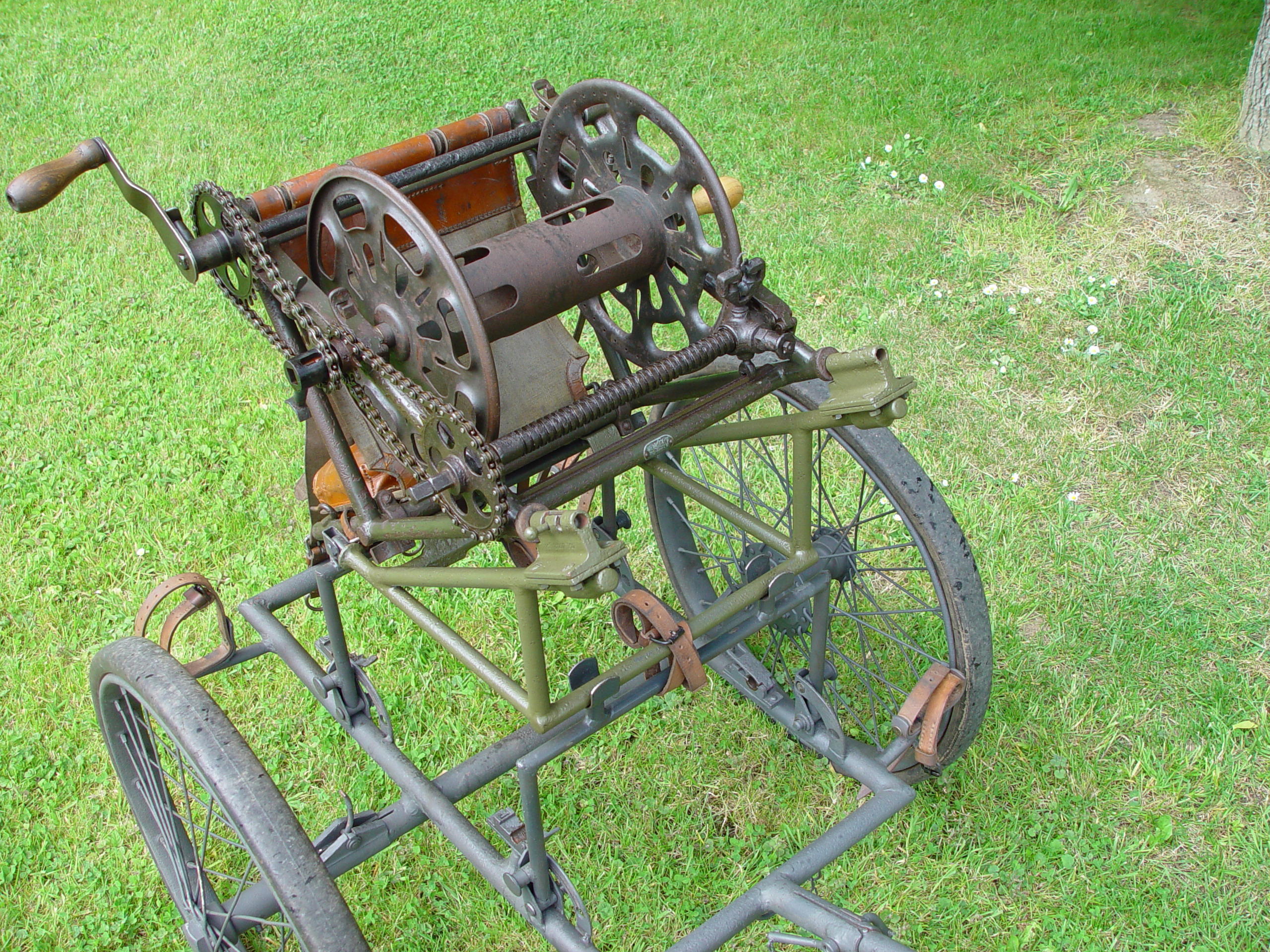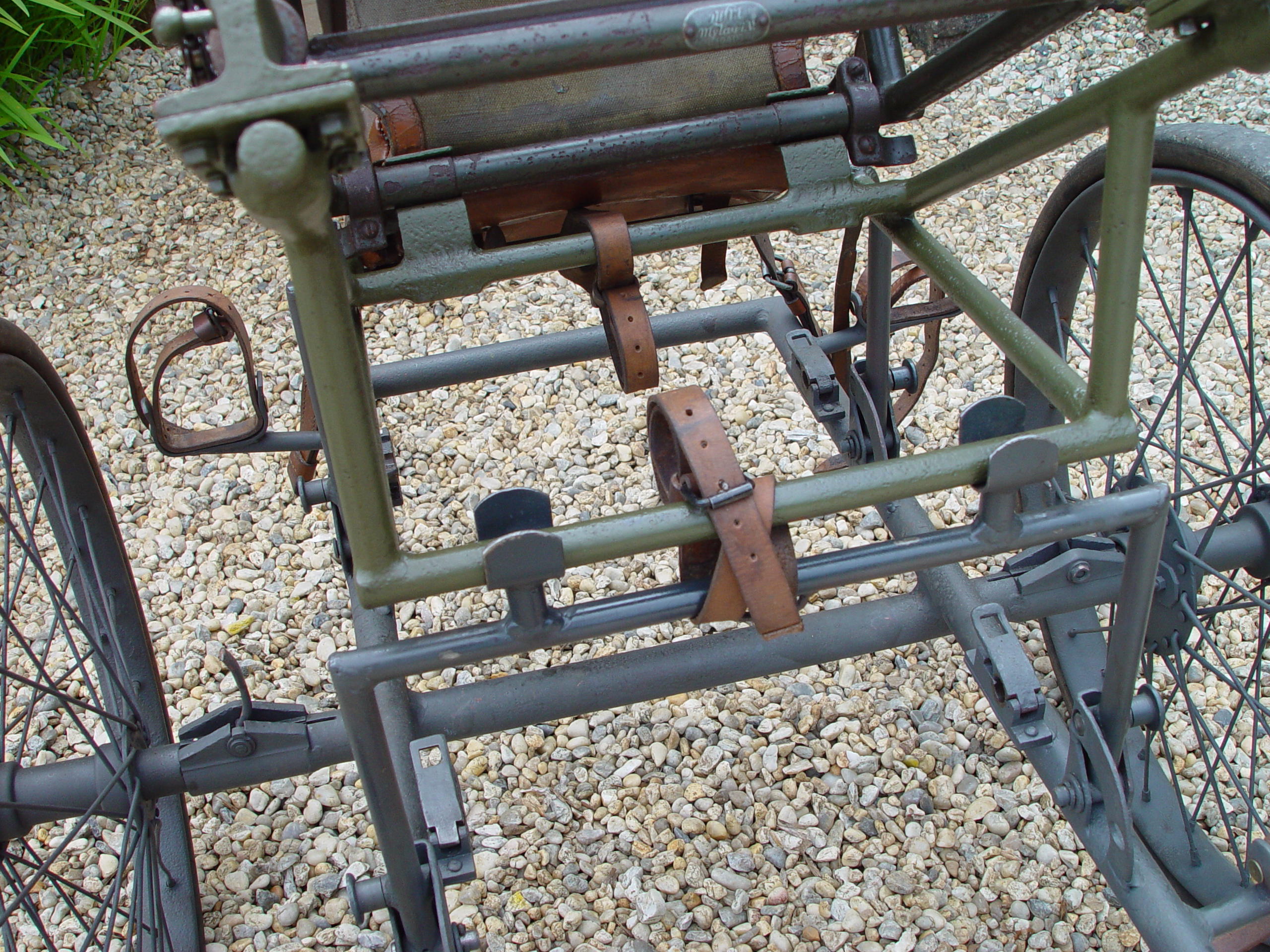Funksammler 182 Posted May 18, 2019 Author Report Share Posted May 18, 2019 I found another bonkers accessory for the Nachrichtengerätekarren! If you mount the Rückentrage on your Nachrichtengerätekarren, the wire spools off towards the rear of the cart which is quite logical. If you want to use the cart to spool up the wire though, you have a problem as you would have to push the cart backwards to do this efficiently. No worries, the German engineers set to work and rather than simply fit another towbar attachment to the back of the cart the Germans chose to design a complicated reversal subframe. The subframe neatly slots into the attachments on the Nachrichtengerätekarren while the Rückentrage in turn is locked onto the reversal frame. Now these leather straps on the supports of the cable cart suddenly make sense, as they are used to keep the subframe secured to the cart. With the subframe fitted the cable feeds onto the Rückentrage from the front. The Rückentrage is slightly tilted backwards which makes changing the wire spools slightly easier and puts the spooling guide in the ideal position. The Rückentrage is also fitted with an additional driving gear with a handle on each side which can now easily be operated from the rear of the cart. So all in all, the subframe neatly solves a number of ergonomic issues... Although I have not found a manual describing the reversal frame, I suspect the frame and additional drive came together as a "spooling up" set. I also have not found the official name of the set and subframe, but without a doubt this was a wartime innovation. Interestingly, the backward tilt of the reversal frame was incorporated in the postwar design of the Nachrichtengerätekarren, although in the postwar design, the Rückentrage points permanently to the rear, so the card has to be pushed backwards during spooling up operations. regards, Funksammler 1 1 Quote Link to post Share on other sites