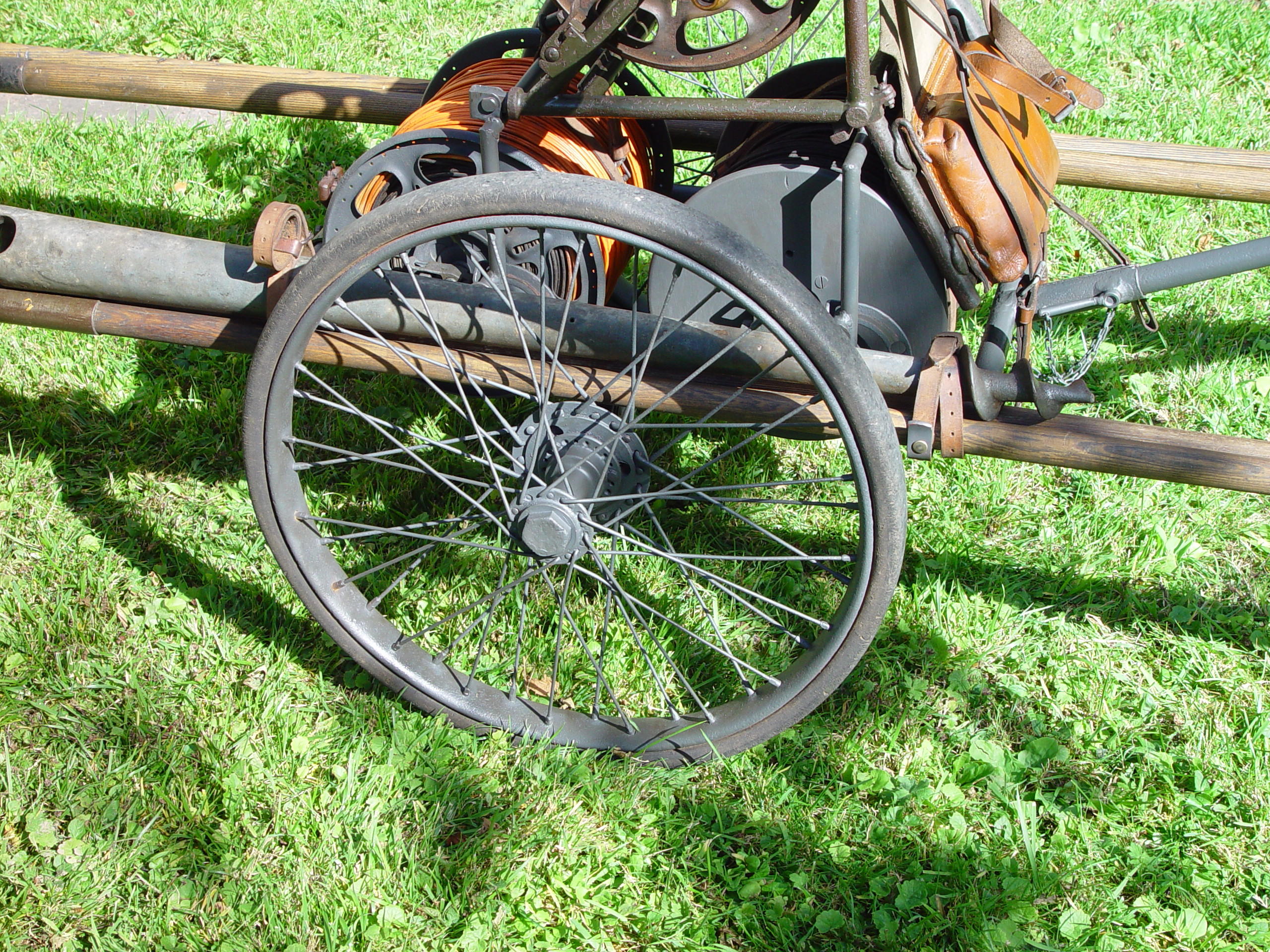 Funksammler 182 Posted September 27, 2018 Report Share Posted September 27, 2018 To help move the heavy rolls of telephone wire and other equipment, the Nachrichtentruppen used a cable cart, the "Nachrichtengerätekarren". Two extra cable reels, as well as the complete "Rückentrage" cable dispenser with a third reel could be carried along with cable poles, "Baustangen" etc. Original WW2 carts are few and far between and could easily be confused with postwar examples. This walk-around should help identify some of the particular features of a WW2 cable cart: - chassis with equal high supports for the "Rückentrage" - straight pull bar with wooden handle - removable wheels with solid rubber tyres The photographs also show the rare "Aufspulgerät", a removable chain drive fitted to the top of the "Rückentrage" as the normal drive is unaccessible whith the Rückentrage fitted to the cable cart. The cable cart shown was found in Normandy in the St. Lo area. It was in pretty bad condition after years of neglect, so what you see is the result of a full restoration. Enough traces of dark grey paint remained so the cart was restored in dark grey. One of the wheels was repaired in the field. Parts were obviously difficult to find at the time as the workshop fitted a new flange so that shorter spokes could be used for the repair. My father and I recovered the cable reels from the Dives river near Chambois when I was a young lad, one can only imagine the messages that these wires carried during the Normandy battles. regards, Funksammler 1 1 Quote Link to post Share on other sites